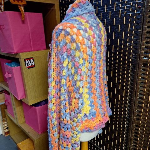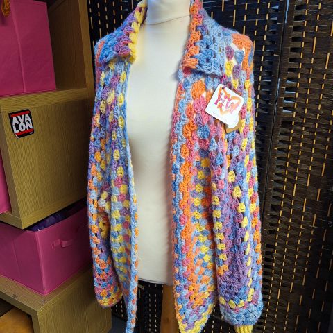 One of a kind, hand blended, hand spun yarn and crocheted with my own pattern.