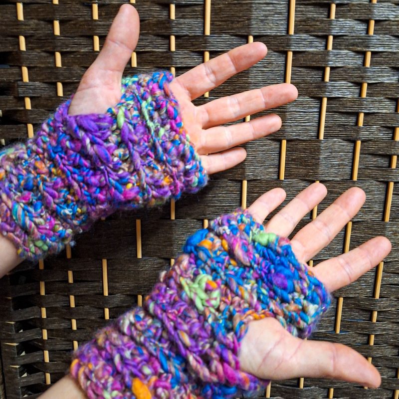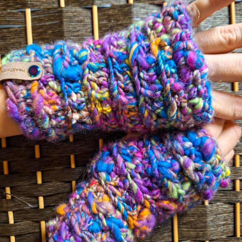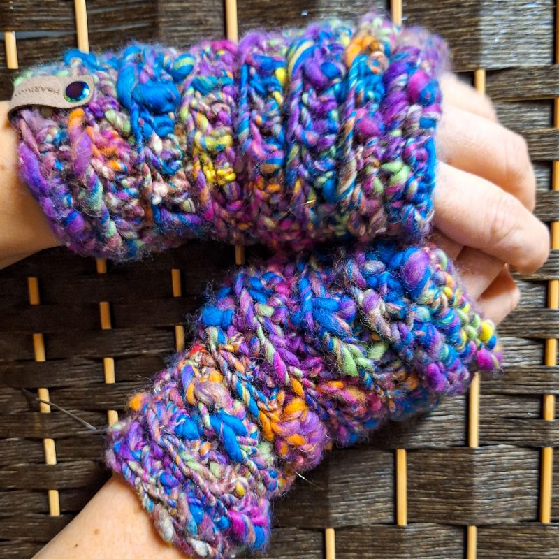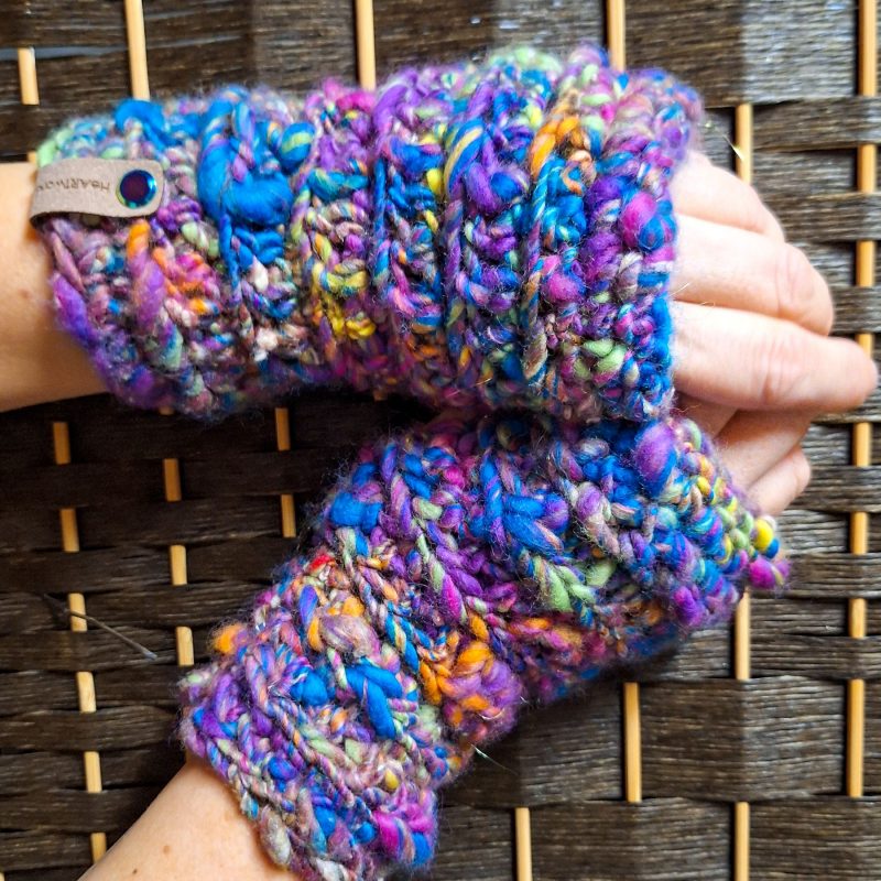 These lovely lightweight wrist warmer gloves are hand made from Merino wool and Firestar fibres.