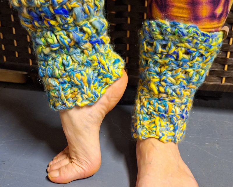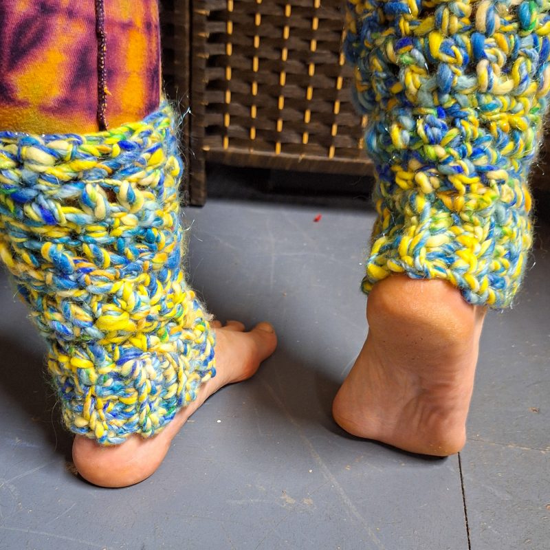 Chunky fit and super comfy, completely unique and one of a kind, with a ribbed bottom and firm fit on the ankle.